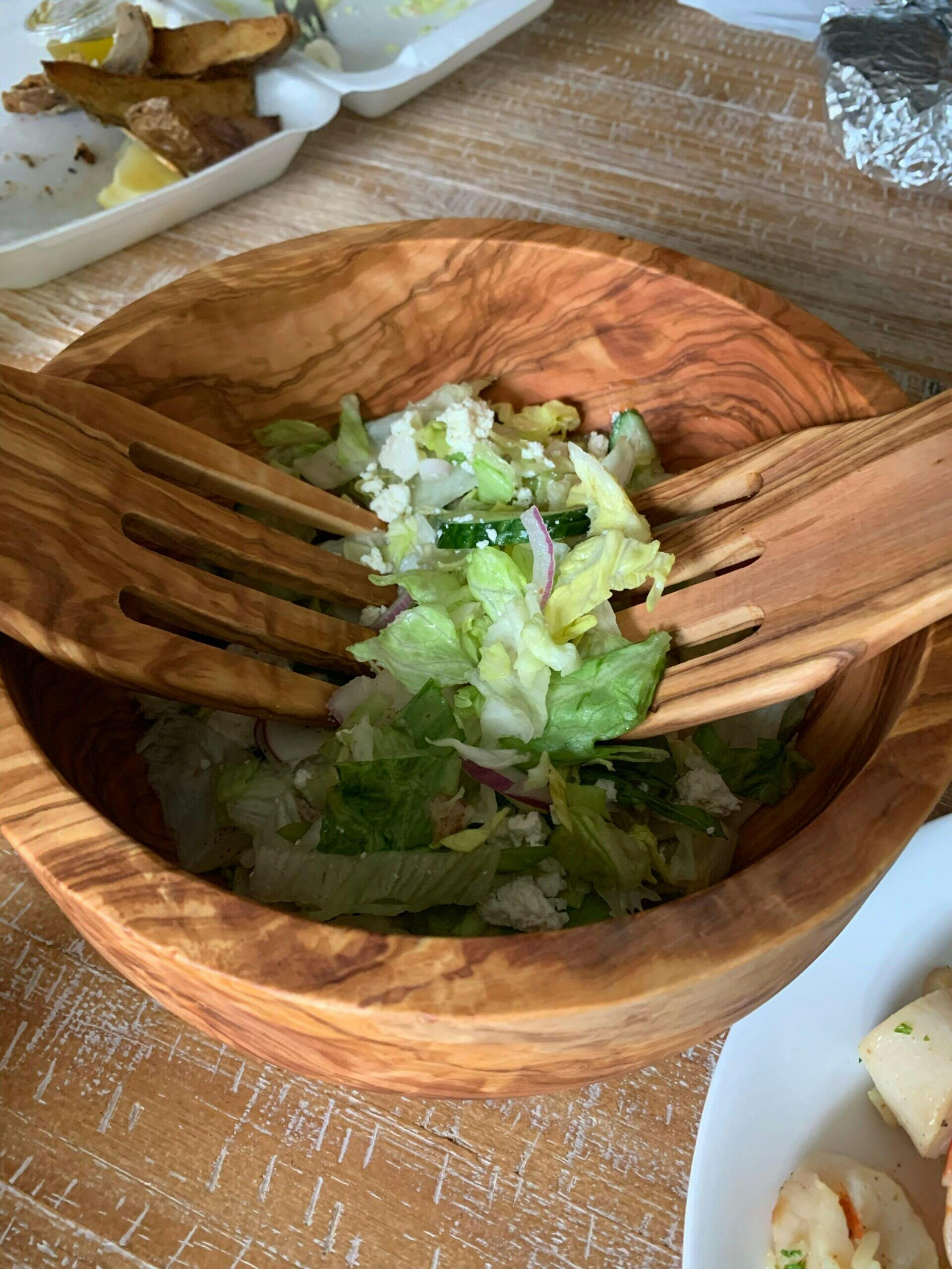 Beautiful salad bowl and servers. Craftsmanship is top notch!