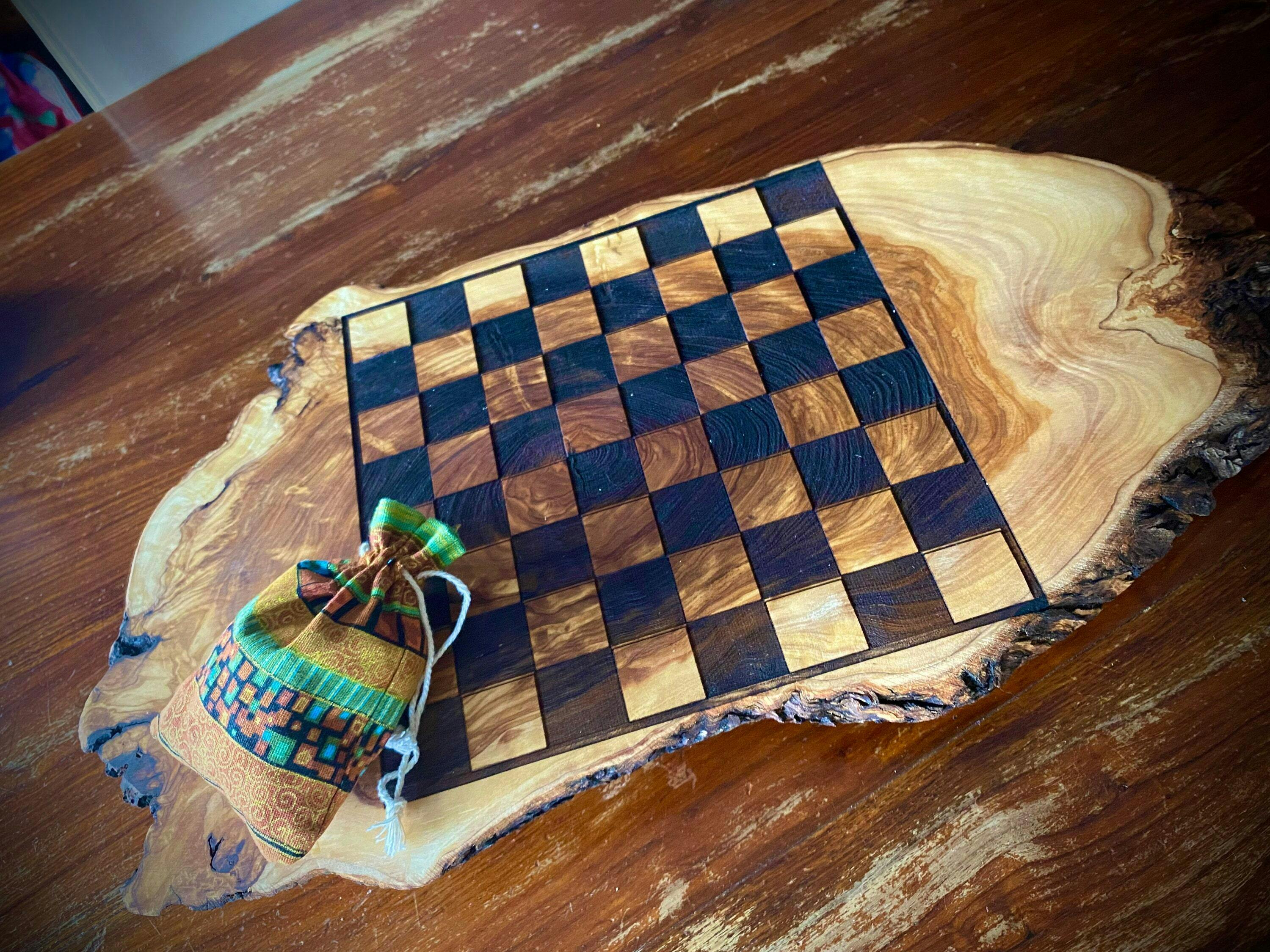Olive Wood Checkerboard Live edge, Checker Board Game Unique, Original Wooden Checker, Checkered Game for Home Gift and Family